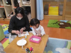 月齢の大きいお友達は顔を描いたり、笏や扇の模様を