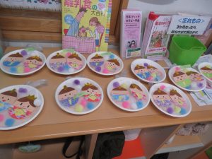 丸い紙皿や綿を使い、ふわふわとした可愛らしい